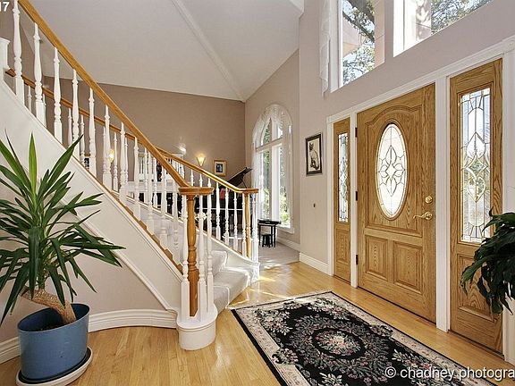 Stunning Mt Hood View! Light/bright open floorplan with soaring ceilings, huge windows and master on the main. Dramatic 2-story entry with hardwood floors. Formal living and dining room. Open kitchen with eat-bar island, corian countertops, pantry and built-ins. Master suite with separate shower/tub, walk-in closet. Potential for ADU/in-law quarters in partially fin basement. Backs to Mt Talbert Nature park. RV park and VIEW!!!!