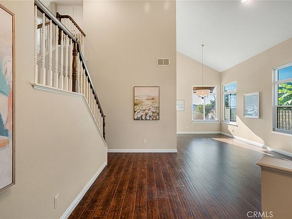 Totally remodeled! Great Location! Beautiful View! This very well maintained property has 5 bedrooms, 3 bathrooms (1 bedroom 1 bathroom downstairs), 3-car garage. Attractive curb appeal, double-door entry. High ceiling in living room and formal dining room. Gourmet kitchen upgraded with white cabinets, quartz counter tops, full mosaic backsplash, and double ovens. Cozy family room with media center, fully upgraded gas fireplace with new mantel, marble tiles, doors, and fire glass. Downstairs guest bedroom with updated full bathroom. The primary suite has large walk-in closet, beautiful rolling hills view. Primary bathroom with quartz counter tops, dual sinks, tile flooring, bathtub and separate shower with frameless glass enclosures. Upstairs has 3 more bedrooms, all with good size. Hallway bathroom also totally remodeled. Other notable features include, laminated flooring in living room, family room and kitchen, carpet in bedrooms, tiles in bathrooms, custom two-tone paint, newer vinyl double-pane windows and patio door, automatic awnings for formal dining room and primary bedroom windows, custom window shades, recessed lights, new water heater, and downstairs laundry room. Water softener and EV charger installed in garage. The private and peaceful back yard with covered aluminum patio deck, and fruit trees. Enjoy the panoramic rolling hills and valley views. Golden location, on the tranquil hill top, but minutes to city facilities, markets, and parks. Outstanding Chino Hills schools, Award winning Rolling Ridge Elementary, Canyon Hills Junior High, and Ayala High!