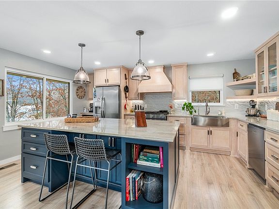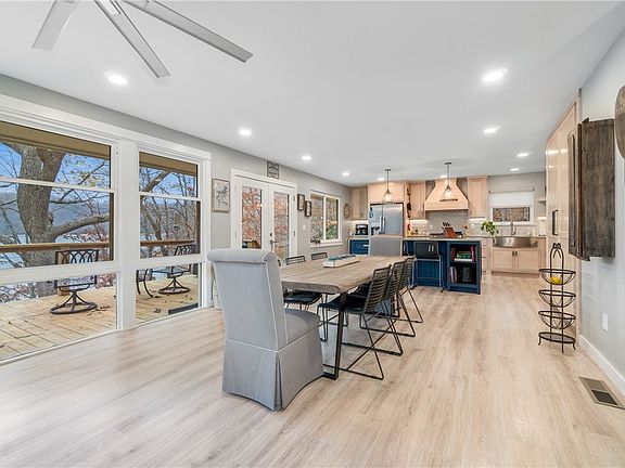 This home, completely remodeled in 2020, offers a fresh and modern living experience just 32 steps from the water. The property features a private dock(with electricity) with two slips and a swim dock, making it a dream for water enthusiasts. Inside, you'll find all new appliances, a new water heater, and updated plumbing and electrical systems. The custom maple cabinets and new flooring add a stylish touch throughout. Whether you're enjoying the waterfront or relaxing in the updated interior, this home is move-in ready and offers the perfect blend of convenience and comfort.