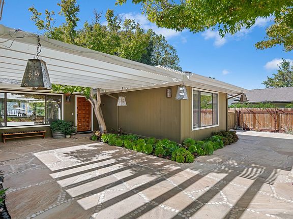 Fruit treesTranquil oak-shaded settingLush irrigated landscapingGated flagstone courtyardQuiet cul-de-sacHome office optionsAttached garage