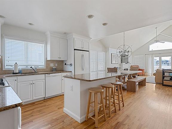 Plenty of season left-- take advantage of this opportunity to own a beautiful 5 bedroom townhome , a block and half to a wide uncrowded beach and only half a block to the bay. This quiet neighborhood area is ideally suited for families looking to enjoy all the island has to offer all summer! Close to the Townsend's Inlet hub of restaurants and shops as well as downtown Sea Isle , but far enough removed to not be in middle of all the hustle bustle. And for outdoor enthusiasts..the new kayak launch has been added to public fishing pier which is just a few blocks walk to 60th. This well maintained 3 story townhome was built by Welsh builders, quality of finishes and construction is evident throughout. Enter the first floor through the east side entrance --find two large bedrooms and one full hall bath as well as laundry facilities. The bedroom on the rear offers 3 Queen and 2 bunked double beds . Upstairs to the main floor you'll find a well equipped kitchen with beautiful granite counters and complementary custom cabinetry and fixtures. The floor is all open from the front deck to the kitchen offering ample dining and living space for relaxing with family and friends. There is a half bath off the kitchen on this floor. Off the living area is a front deck with it's own outdoor dining area as well as color coordinated shade awning. At the rear of the second floor is an ensuite bedroom with it's own deck overlooking the back yard area. Up to the third floor are two more large bedrooms and full hall bath. The third floor rear bedroom also has its' own private rear deck. Servicing both second and third floors and front deck is a SONOS sound system included in the sale. Down again to the ground is an oversized full one car + garage with it's own refrigerator. The back yard is all stone and open space, plenty of space to add a pool if one so desired. And no shore home is complete without an enclosed outdoor shower. The owners have replaced the two hvac condensers in 2019 and 2021, and installed a new washer and dryer in 2020. The property is offered furnished with minor list of exclusions for art and personal items. Meticulously maintained by current owners, this home has not been used as a rental property but would perform very well on rental market, in this highly desirable location -- income potential $60K if used as a full time investment property.