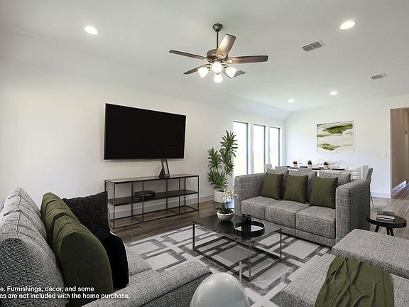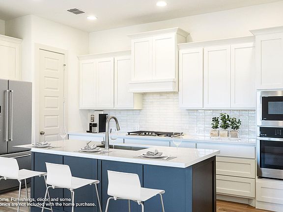 READY FOR MOVE-IN! Extended entry with 12-foot ceiling. Home office with French doors and ample storage space right off the main hallway. Kitchen features walk-in pantry, generous counter space, 5-burner gas cooktop and inviting island with built-in seating space. Dining area features wall of windows. Family room features wall of windows. Primary suite with 10-foot ceiling and wall of windows. Double doors lead to primary bath with dual vanities, garden tub, separate glass-enclosed shower and large walk-in closet with access to utility room. A guest suite with private bath adds to this one-story design. Covered backyard patio. Mud room off two-car garage.