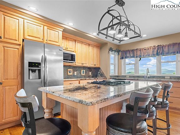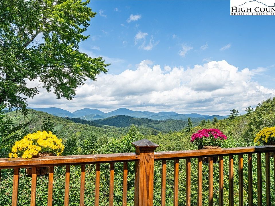 Mountain-style home perched on the ridge of Eastridge Acres with sweeping long-range layered views, just within 15 minutes of downtown Boone. This well-established subdivision offers paved roads and easy year-round access, while the home itself sits at over 3,500 feet in elevation, providing cool summers and a true mountain retreat. Featuring 3 bedrooms and 3 bathrooms, this home’s open-concept living area includes vaulted ceilings, a stone fireplace, and a large kitchen complete with granite countertops, loads of cabinetry & an oversized island with seating —perfect for gatherings. Step outside onto the expansive deck to take in breathtaking mountain vistas, whether entertaining friends or simply relaxing in the fresh mountain air. The layout offers flexibility with the option of a main-level primary suite or an oversized ensuite upstairs off of the loft. A finished basement with den, wine room and garage adds extra living and storage space. Home has been well maintained over the last several years with a long list of improvements, most recently freshly stained exterior. Located near the Blue Ridge Parkway entrance and only a few miles from the New River! Excellent option for someone seeking a full time residence in a great location or a second home getaway. Basement was not permitted. There is an ongoing $400 annual assessment towards the neighborhood roads/paving.