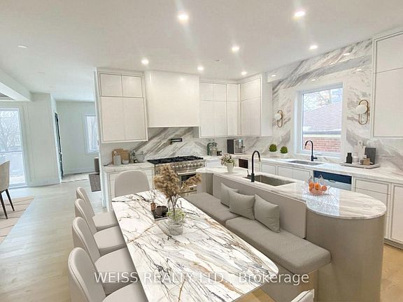 Exquisite large Residence in this desirable location. Premium Finishes Beautifully-Executed Custom Features At Every Turn. Generous 4 +1 bedrooms, 7 bathrooms, finished basement with two separate walkouts. 4 Car Driveway & attached Garage. HEATED/snow melt system for both front and side exterior stairs, with automatic weather sensor. Extraordinary Fenced Backyard corner lot -AMENABLE TO BUILD A POOL-see pool rendering ** Outstanding Principal Spaces Presenting Extra High Ceilings, beautiful-wide plank engineered hardwood Floors and decorated ceiling treatment. Family Room W/ Gas Fireplace, Built-In Bookshelves & Bay Windows. Beautiful Dining Room, Gracious Chefs Kitchen W/ Marble Countertops, High-End Appliances, 2 sinks stations. Central Island & Breakfast Area. Walk out to a large deck with natural gas BBQ connection. Rough-in for electric awning over deck . Family Room and basement with Walk-Outs To Backyard. Stylish Office Featuring Integrated Bookcases & Bay Window. Impeccably Conceived second floor with Wet Bar & built in bar fridge. Primary Suite with 6-Piece Ensuite Of Spa-Like Quality, heated floors; full size stacked washer and dryer. Wired wi-fi booster; Smart Home controlled Hub, Multiple wall mounted Alexa Screen for smart home control. Main floor smart WiFi switches, Nest Thermosts, Integrated security camera system with 6 cameras and NVR recorder, Sonos system with built in ceiling speakers. All bedrooms have ensuite bathrooms. Well-Appointed Basement W/ 10 ft+ High Ceilings, Vast Entertainment Room W/ Adjoining Recreation Area, Nanny Suite, two 4-Piece Bathroms & Fitness Room with rock climbing wall. Rooms virtually staged. So many more Features- all detailed in the Schedule below. Superb Location Short Walk To everything.... This Home Exemplifies Elegant & Luxury Family Living which cannot be rebuilt at the present asking price. *** A VENDOR TAKE BACK FIRST MORTGAGE UP TO $2,000,000 IS AVAILABLE TO QAULIFIED BUYER AT REASONABLE RATE***.
