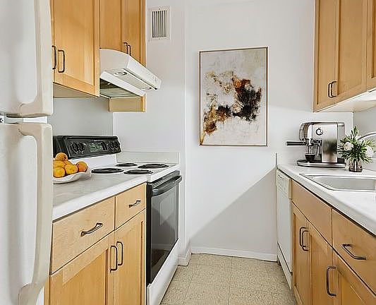 Enter through the welcoming foyer and into the spacious living and dining room that is perfect for entertaining. The separate kitchen features a full appliance package, as well as an abundance of counter and cabinet space. Located in the hall are three large closets to provide ample storage space. Both bedrooms are generous in size to accommodate king sized beds, with each featuring a large closet with built in storage