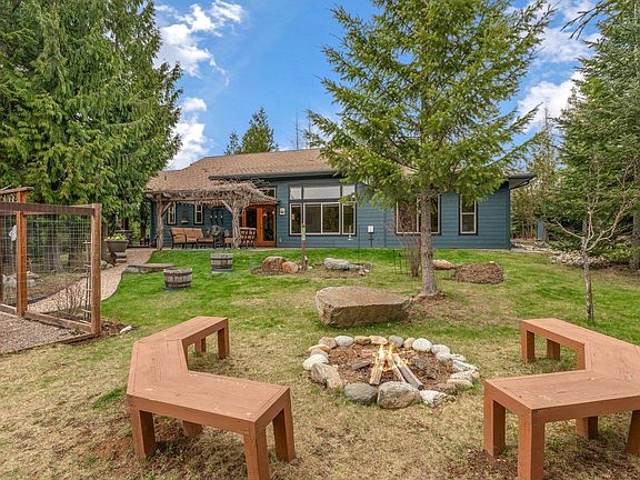 Tucked within the coveted Canyon Creek Ranch neighborhood, this stunning custom home by renowned builder Idagon Homes offers a rare blend of modern design and rustic charm. Set on 3.23 private park-like acres with a seasonal creek, this high-end retreat was thoughtfully designed for both comfort and style. Step inside to discover the radiant chocolate floors throughout, anchoring the open concept living space where the gourmet kitchen shines with granite counters, a peninsula, under-cabinet lighting, and stainless appliances including a filtered drinking water system. The dining and gathering room centers around a floor-to-ceiling stone fireplace with a high-efficiency Xtrodinair wood insert, perfect for cozy evenings. The primary suite is a true escape with a spacious walk-in closet, a luxurious bath featuring a soaking tub, walk-in shower and dual granite vanities. Two additional bedrooms include one with a built-in queen Murphy bed, office desk and bookshelves, offering ideal flexibility. The guest bath impresses with a travertine tile shower, copper sink and granite counters. Additional spaces include a well-appointed laundry/mud room with granite counters and a full size stackable washer/dryer. A versatile sunroom/flex space added in 2022, complete with LVP flooring and a cozy Lopi propane stove. Outside enjoy your own natural sanctuary with a partially cleared SE facing yard, custom greenhouse, fenced vegetable garden, storage and wood shed, and a fenced puppy play/training yard-Perfect for pets or small livestock. A paved driveway, RV hook-up, and 2 car garage with overhead storage and a built in work bench complete the package. Enjoy privacy, beauty, and access to a 40 acre greenbelt-Exclusive to the neighborhood-Your luxury Idaho lifestyle starts here.