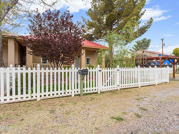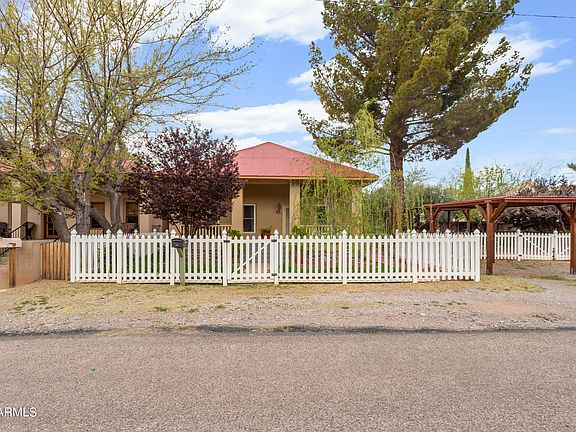 Beautiful, rare, adobe home in the quiet and beloved Warren neighborhood of Bisbee. Impeccably maintained, updated & appointed 2 bedroom, 2 bath on an extra spacious (.15 acre) corner lot with so many extras. Wood floors throughout with tile in the kitchen and bathrooms. Gorgeous kitchen addition, completed in 2019, is just waiting for its next chef or baker! Kitchen leads into formal dining room and living area—perfect for entertaining. Ample parking, carport, additional fenced side yard area for extra garden space or chicken coup, electrical (new 220 amp panel), central heat, custom dual-pane windows, metal roof and more. Main bathroom has a tiled rain shower/extra deep soaking tub. Guest bedroom also easily doubles as an office with a custom fitted Murphy bed. Cont. in Supplement t Amazing exterior spaces abound with custom built gazebo (w/ electricity) in backyard, secure garden beds, covered front porch running along the front of the house, irrigation and more! Exterior enclosed laundry space with washer and dryer, cozy additional patio space--great for the grill! Detached garage is currently being used as a workshop and storage space. Architectural plans for second story garage apartment will convey with sale. Variety of trees and thoughtful landscaping features. This turn-of-the century beauty is in an excellent location--close to the Saturday Farmers Market, historic Warren Ballpark, B&D Hardware, Arizona Street Fitness, Copper Pig Restaurant and more! 7 minute drive to historic Old Bisbee, 8 minute drive to Safeway, ACE and more! Main bedroom furnishings will convey if Buyer is interested. Buyer to verify all facts and figures. Please allow 1-2 hour notice for showings.
