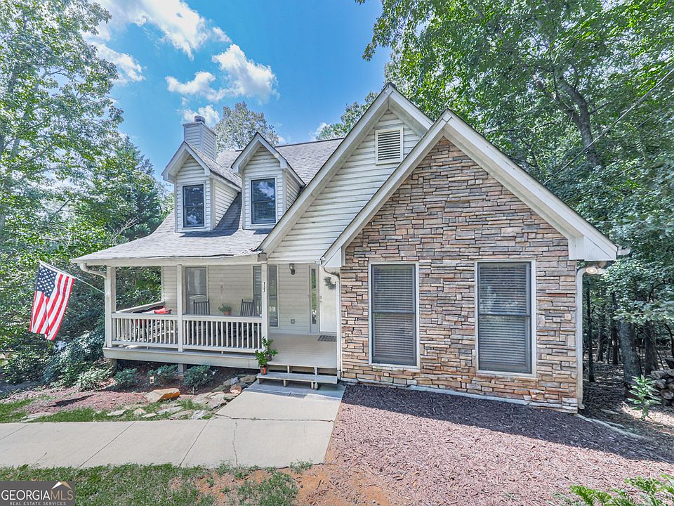 MOTIVATED SELLER! 30K PRICE IMPROVEMENT! Looking for your mountain retreat? Wanting that Lake Life? Come see this beautiful cape cod home situated on a pristine lot which boasts a serene wooded backyard including a peaceful babbling brook! The beautiful rock lined driveway is steep but provides much welcomed privacy. Sit on the private back porch with a cup of coffee and feel as though you are on vacation. Lake Arrowhead is a highly sought after lively lake community that includes, boat rentals, golf course with clubhouse and restaurant, miles of hiking trails and 2 large resort pools. The home is ideally located near gate access. You are just minutes away from lake and mountain views. Upon entering the main level you're welcomed in to a grand two story living room with loft. An open kitchen concept with island plus french doors leading out to your private covered back porch. Main level also boasts 2 large bedrooms and one full bath. The second level has the large primary suite complete with a whirlpool bathtub and separate shower. Along with the primary suite there is also the spacious loft which could be used as an office or gaming area. The partially finished basement is already studded for a bathroom and is a great entertaining area. The potential is endless in this home. Come tour today! Seller relocating to Florida.