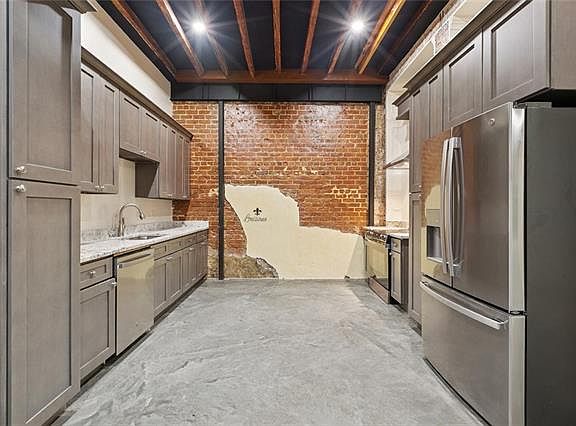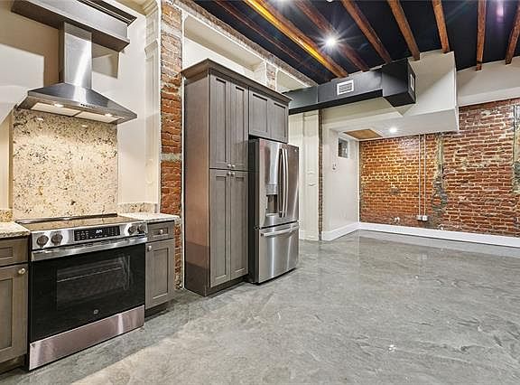 Architectural detailsPrivate outdoor spaceStainless steel appliancesGranite countertopsSoaring ceilingsExposed brick walls