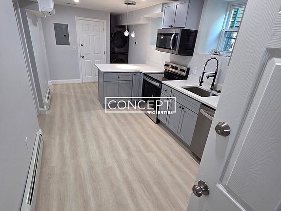 Modern light fixturesIn-unit washer and dryerNewly renovated bathroomLarge closetsPlenty of cabinet spaceGorgeous eat-in kitchenSpacious bedrooms