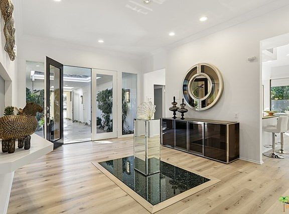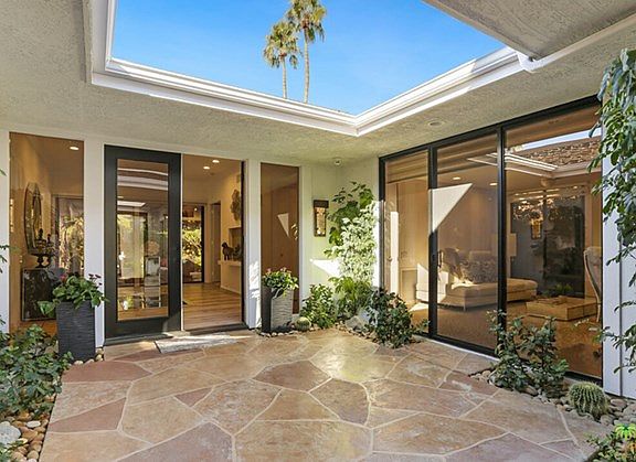 Stunning, Elegant, Contemporary 3B/3B Furnished Home, located at the The Springs . This is Rancho Mirage living at its best. Beautifully maintained, this home has been upgraded with new AC, new outside door screens, new washer, dryer, new pool heater as well as new outside painting. Master looks out to the pool and sitting area with fire pit. 2nd guest bedroom is currently used as an office and also has access to the outside courtyard as well as its own little private garden area. Fantastic bathroom with beautiful cabinetry. The 3rd bedroom accesses the outside pool area with lovely bathroom and walk in closet. The formal Dining Room and Living Room areas blend-in to create a massive room that showcases the custom furniture designed by Roy Sklarin of LA. Leased Solar System. The HOA includes, Roof, Cable, Clubhouse, Earthquake Insurance, Fitness Center, Pest Control, exterior painting, 24 hr gate guard and alarm monitoring. Clubhouse is currently being renovated.