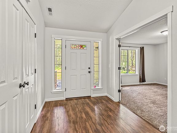 Beautiful one-level custom home w Toutle River, in gated Steelhead Landing! Located on 5+ private, treed acres. Perfect for entertaining, vaulted kitchen with island opens to dining room & great room & slider to expansive entertainers deck. 4 bedrooms, ALL with walk-in closets, primary suite has slider to back deck and fenced in yard. Extra deep, oversized garage, RV parking, and room to build a shop. HOA includes clubhouse and community waterfront/private beach, with many trails for exploring, walking or trail riding. Lots of wildlife and a creek.--Commute to Vancouver / PDX Less than 1 Hour