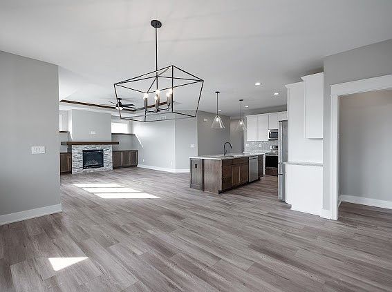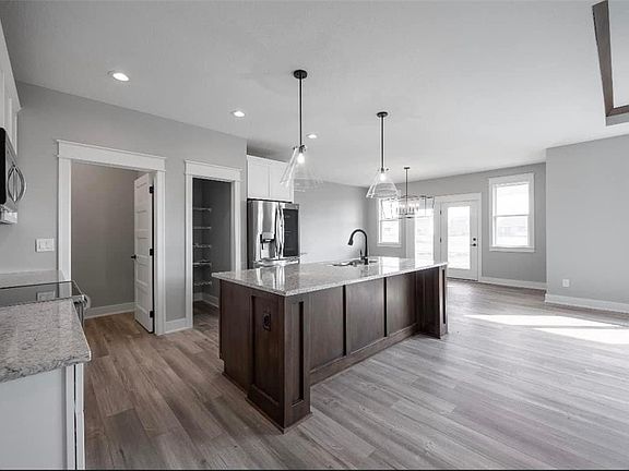Welcome to the Afton XL plan by Vibrant Homes. This design provides 1,750 sq ft on the main level with a modern open design to accommodate families and empty nesters. Family room features a fireplace with great built-ins. Transition into the large eat-in kitchen with ample cabinet space, walk-in pantry, and quartz countertops. Take in the natural light from the multiple windows in the dining and family room area. Congregate around the island with ample seating for your friends and family. The master bedroom location offers privacy as it is tucked behind the kitchen and dining area. Your master bedroom leads into the master bath which features a double vanity, tiled shower, soaking tub, and walk-in closet. Finished basement boasts an additional 1,100 finished sq ft with wet bar, large entertaining area, bedroom and bathroom. Additional Features: Covered Deck with patio pad, basement pre-wired for entertainment system, Cat 6 wiring & whole home humidifier.