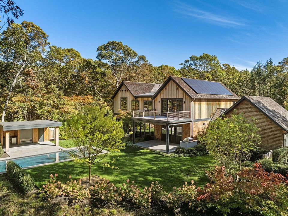 Just moments from Amagansett Village and the ocean beaches, this brand-new custom-built residence combines refined architecture, natural beauty, and modern luxury in one extraordinary package. Nestled between the picturesque bay beaches of Devon Yacht Club, Fresh Pond Park, and Albert's Landing, and set across from a pristine 100+ acre reserve, the property enjoys both privacy and convenience in one of the Hamptons' most coveted coastal enclaves. Meticulously constructed by Bluefin General Contracting-renowned for its platinum building standard, full-package home construction-this 6,600 +/- sq. ft. home balances timeless design with contemporary sophistication. The home's meticulous craftsmanship is complemented by HGC's professional landscape design, creating an outdoor oasis that enhances its year-round appeal. Spanning 3 levels, the new construction home offers 7 bedrooms, 6 full and 3 half baths, with expansive living areas designed for both comfort and entertaining. The open chef's kitchen impresses with custom two-tone cabinetry, a white oak island, and top-tier Wolf and Sub-Zero appliances. Throughout, bespoke millwork and warm wood-beamed ceilings add character, while gas fireplaces in both the living room and pool pavilion bring a cozy ambiance to every season. The primary suite features a private balcony and spa-inspired bath with radiant heated floors, while the finished lower level includes a 4K theater, gym, and wet bars for leisure and convenience. Outdoors, the 360 sq. ft. pool pavilion, complete with wet bar, half bath, and outdoor shower, anchors the resort-style saltwater heated gunite pool and spa. An outdoor kitchen and BBQ area invite alfresco dining amid lush, specimen landscaping that ensures privacy and visual appeal. Sustainable and smart, the home integrates a 7.2kW solar system, well water with neutralization, whole-house steam humidification, and Savant smart-home controls for lighting, audio, and security. With a 2.5-car garage and covered rear porch, this Amagansett residence exemplifies modern Hamptons living at its finest - craftsmanship, technology, and coastal serenity meet in perfect harmony. Just minutes from ocean beaches, beloved farmstands, and Amagansett Village's elevated dining scene, this exceptional residence captures the essence of luxury Hamptons living-where coastal beauty, modern comfort, and refined taste converge.