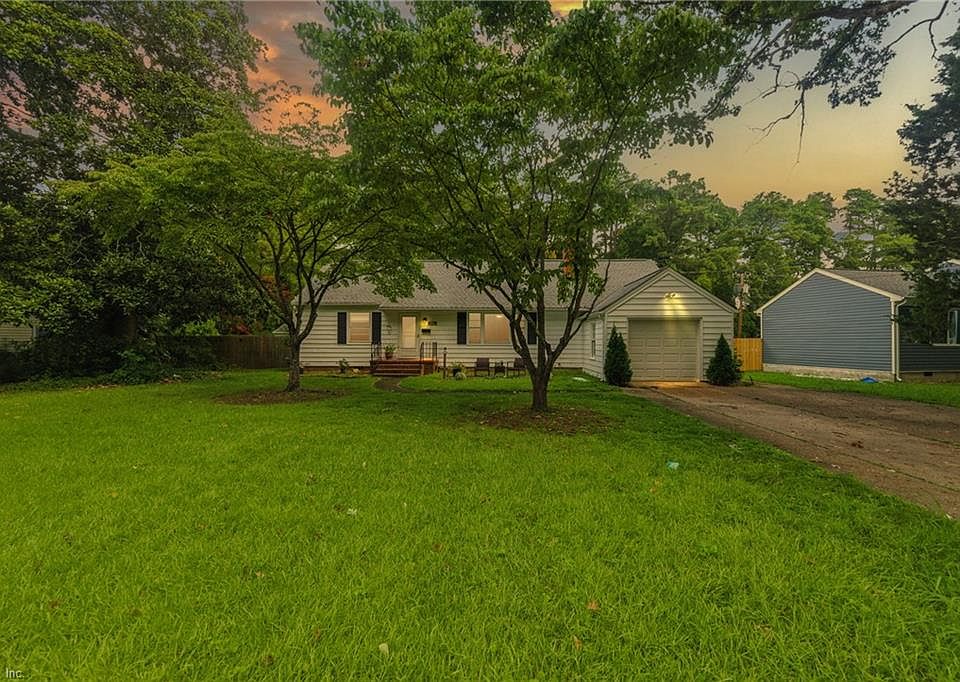 Charming, updated ranch offering comfort and convenience in Newport News! This beautifully maintained home features recently refinished hardwood floors throughout and fresh interior paint. The living room offers a cozy wood-burning fireplace with built-in shelving on both sides, adding character and warmth. The bathroom was just renovated and includes a new vanity with granite countertop and a stylish walk-in shower with subway tile. The kitchen has been refreshed with painted cabinets, new countertops, and brass hardware. Enjoy the outdoors from your screened-in back porch overlooking a massive, fully fenced backyard on a .69-acre lot—plenty of space for pets, play, gardening, or future expansion. The backyard also includes well water access to support landscaping or gardening projects. With a newer roof and HVAC, this home blends charm, space, and recent upgrades in a convenient location. Schedule your showing today! VA loan assumable at 4.82%, ask agent for details.