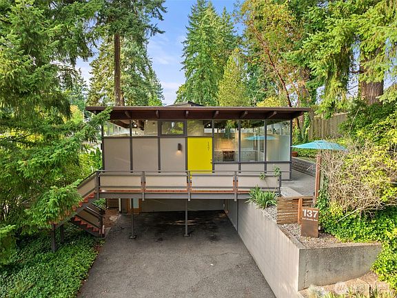 Classic MCM open-concept design with minimal interior walls and seamless integration of living, dining, and kitchen areas. Step back in time with this one-of-a-kind 1952 MID CENTURY MODERN CLASSIC—an enthusiast’s dream. Designed and owned by Mary L. Davis, the first woman to graduate UW’s architecture school post-WWI, this award-winning gem was featured in numerous magazines. Thoughtfully preserved, it showcases vaulted ceilings, expansive windows, and a great room where sunlight pours in and nature feels just outside. A private hot tub is tucked among terraced gardens. Located in Fircrest—where small-town charm meets timeless design. Lower level flex space works as bedroom, office, or Airbnb. A rare offering! Virtually staged.
