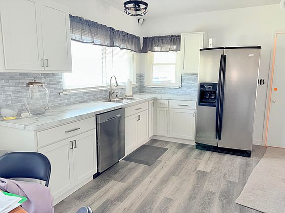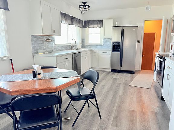 Spacious and beautifully updated, this solid brick 3-bed, 2-bath home is a must-see! Featuring a brand-new kitchen with modern appliances, new flooring, and upgraded lighting, this home offers style and comfort. The oversized living room boasts a cozy wood-burning fireplace, while the finished basement provides additional living space, another fireplace, and a full bath. A fenced yard adds privacy, and ample storage is available throughout. Conveniently located near shopping and highways, this home is ready for you to move in and enjoy! Buyer to verify all information. There is work still being completed due to the remodel so please pardon the dust