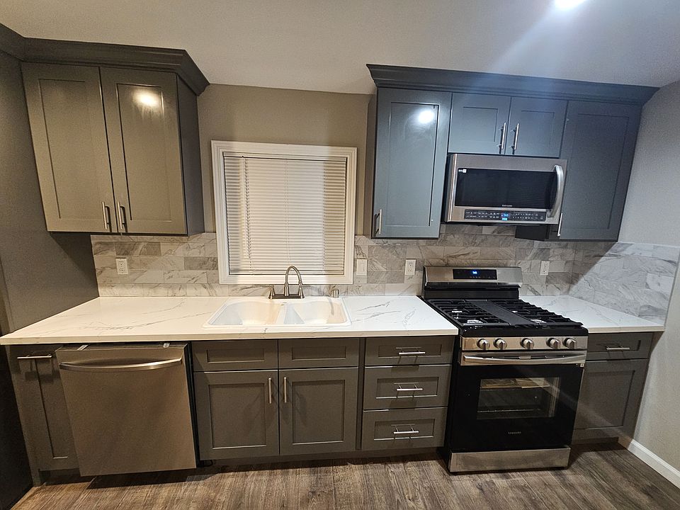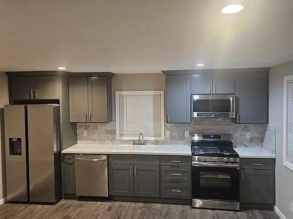 Side yardPlush finishesNew paintAmple natural lightWindow blindsOver-range microwave with ventSleek kitchen