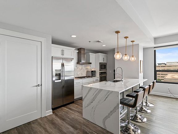 Solera farm sinkGas fireplaceCambria quartz counter topsExpansive city viewIn unit storageOversize balconyTiled backsplash