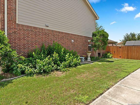 Welcome to this beautiful and well-loved home at 137 Enchanted View. Like new and better than builder grade, this two-story, 4-bedroom, 2.5-bath residence offers 2,404 square feet of thoughtfully designed living space on a desirable corner lot that backs to a greenbelt for added privacy. Built in 2011, the home features a spacious open floor plan with luxury vinyl plank flooring throughout-no carpet anywhere. Upon entry, a formal dining area greets you to the right. The kitchen, complete with granite countertops and a casual dining nook, flows seamlessly into the living room, creating an inviting space perfect for entertaining or everyday living. The primary suite is conveniently located on the first floor and serves as a private retreat with an ensuite bathroom featuring double vanities, a soaking tub, separate shower, and walk-in closet. Upstairs, you'll find a large game room, three additional bedrooms, a full bathroom, and a dedicated media room-perfect for movie nights, gaming, or a quiet escape. This home has been thoughtfully upgraded for comfort, efficiency, and peace of mind. Highlights include paid-off solar panels, beautiful landscaping, WiFi-controlled sprinkler system, Trimlights with a lifetime warranty (2023), cedar fence with metal posts (2023), upgraded roof and gutters (2022), freshly painted exterior (2022), water softener and water heater (2021), and a new HVAC system (2019). For extra convenience, attic access provides additional storage. Step outside to your peaceful covered patio and enjoy the privacy of no backyard neighbors along the greenbelt. The home is zoned to highly desired SCUCISD schools, just minutes from Byron P. Steele High School, and close to great shopping, dining, and entertainment-with only a 15-minute commute to JBSA Randolph. Community amenities include a neighborhood park, half basketball court, and a new pool recently approved by the HOA and set to open in 2026, adding even more to the lifestyle and amenities you'll love. Don't miss this incredible opportunity-schedule your private showing today!