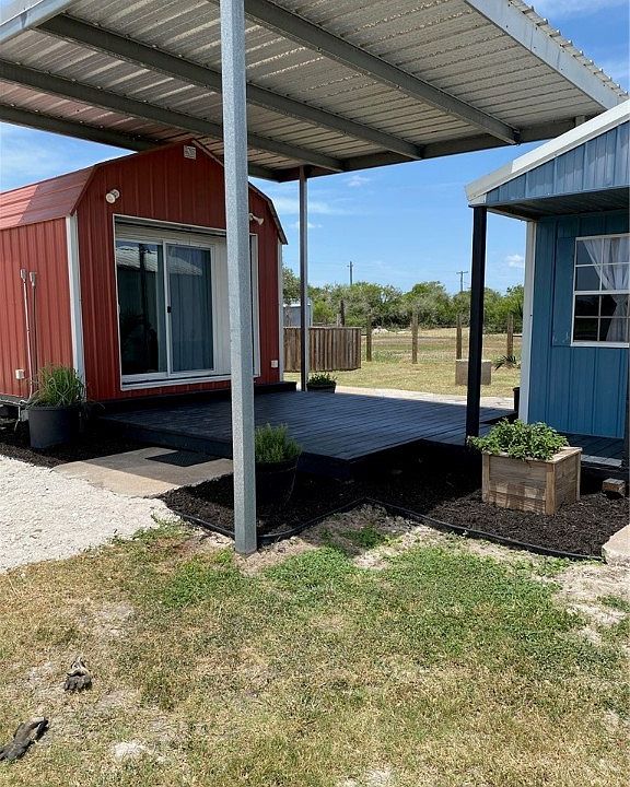 This is it!!! Acreage in the country, but close to town. Located outside of Woodsboro, TX. The 5+ acre tract of land has two finished cabins connected by a nice covered deck and a concrete patio great for entertaining. Nice place to gather and enjoy the country. The cabins have vinyl plank flooring, are well insulated and have wood interior walls. Cabin 1 has marble countertops and a full bath. Cabin 2 has an electric Fireplace/Heater with storage, a full kitchen and Washer/Dryer hook ups. The back yard has a fire pit and 2 outdoor 1/2 baths. There is water and electrical hook ups for an RV. The property is fully fenced and cross-fenced and has a large animal shed and working pen. Nice wooded areas including Mesquite and Oak trees. Enjoy sitting under the shade trees cooled by the breeze. All this and no city taxes!!! This is a working ranch, please do not enter the animal pens/pasture or attempt to pet them. There may be wildlife on the property. So contact your Realtor TODAY to see this property. Owner is a licensed Texas Realtor.