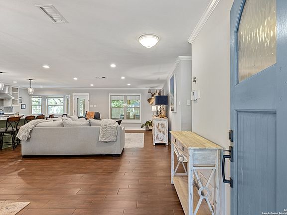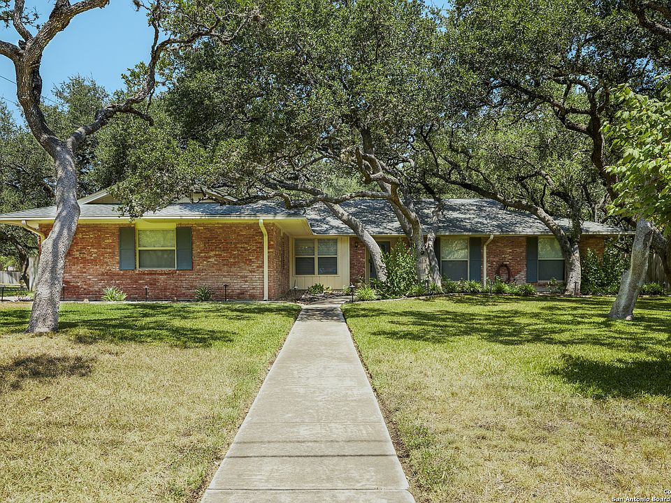 Don't miss your opportunity to own this beautifully maintained 3 bedroom, 2 bath home tucked away in charming Hollywood Park. This home sits on a corner lot, just under a half acre, with professional landscaping and over 20 mature live oaks. The home is filled with upgrades, from quartzite counter tops and ceramic tile floors to custom cabinetry in the kitchen. The open layout has room for a full dining area, a home office and plenty of space for entertaining. Master bedroom features a walk-in shower and spacious walk-in closet. This single-story residence is perfect for first-time buyers, growing families, or those seeking a peaceful retreat.
