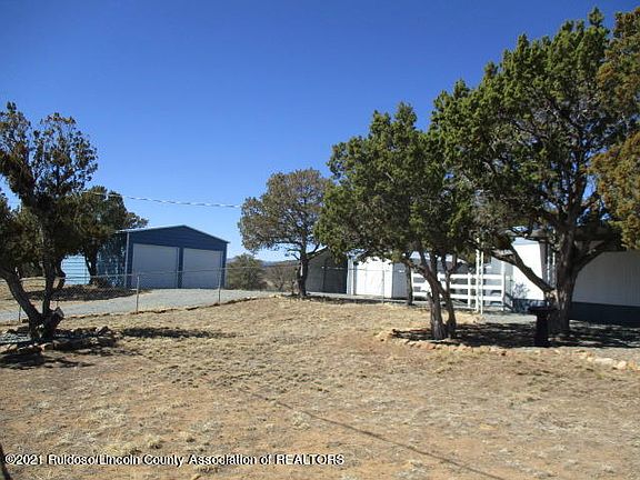 Refreshing get-away or comfortable full time home. Well cared for. Covered porch, perfect for cookouts or just for relaxing & soaking in nature - beautiful sunsets & sunrises and watching the deer stroll by. Perched on a hilltop with absolutely fantastic 360 views...Sierra Blanca, Capitan Mountains, and all surrounding area. 25 x 30 double garage with oversized rollup doors. Double carport. Shop w/ electricity & work bench. storage building. RV port w/electric & water. Attractive wood rail & chain link fencing. Driveways & parking areas graveled. Trees trimmed and thinned. Freedom from restrictions. No well, but property has a well planned, easy-to-use, water system set up for water hauling.