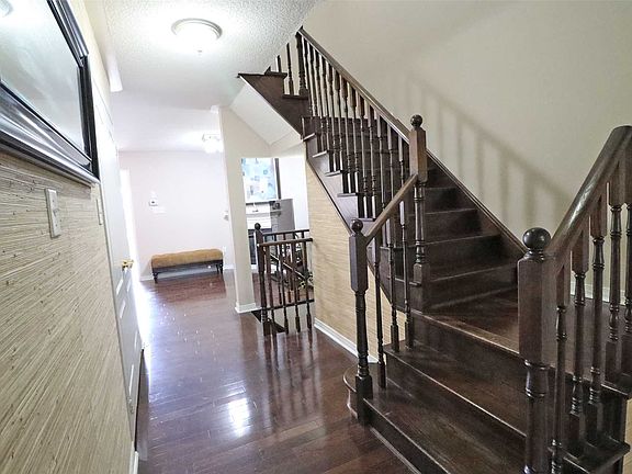 Sun-Filled Townhouse With Practical Layout & 3 Bedrooms. Just Under 1500Sqft Of Open Living Area. Thousands Of Dollars In Upgrades And Renovations. Direct Access To Single Garage From Inside The House & Has A Long Driveway That Fits 2 Cars. Spacious Kitchen W/ Upgraded Cabinets, Lots Of Storage Space, S/S Applicanes & Overlooking Deck. Hardwood Flr Throughout On The Main Floor. Living Room Has Built In Fireplace.