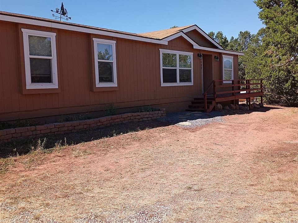 Beautiful rural setting of a three bedroom, two bath manufactured home on permanent foundation. Home in move-in condition and ready! Just bring your furnishings. Fenced area with pole barn in fair condition for your animals. Private with great views. Shared well and septic and easy to show.
