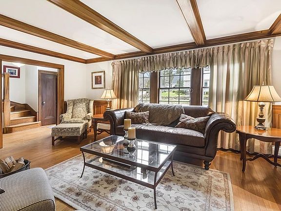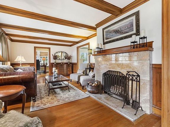 Colonial brimming with detail on a desirable, fenced-in, flat, expansive yard. The architectural nuances of this 1930's home; gumwood, beamed ceilings, built-ins, hardwood floors, wainscoting, is evident throughout. The 1st floor has: marble-faced fireplaced living room; dining room; light filled office; kitchen with SS gas Viking stove; cheery family room & half bath. The 2nd floor has: master with walk-in closet, 2 additional bedrooms & updated bath with dual sinks, glass enclosed shower, spa tub & laundry closet. The 3rd level has the 4th bedroom, walk-in cedar closet & storage area. The LL is a full walkout with a finished room--awesome space for teens, exercise and/or man cave. Enjoy sitting out on the expansive, mahogany deck overlooking the very, private yard with plenty of room for sports. Two garages & ample additional parking. Enjoy this lovely property as-is or slowly make it your own. This could be your forever home. Steps to Fells. Check out the 3D tour!