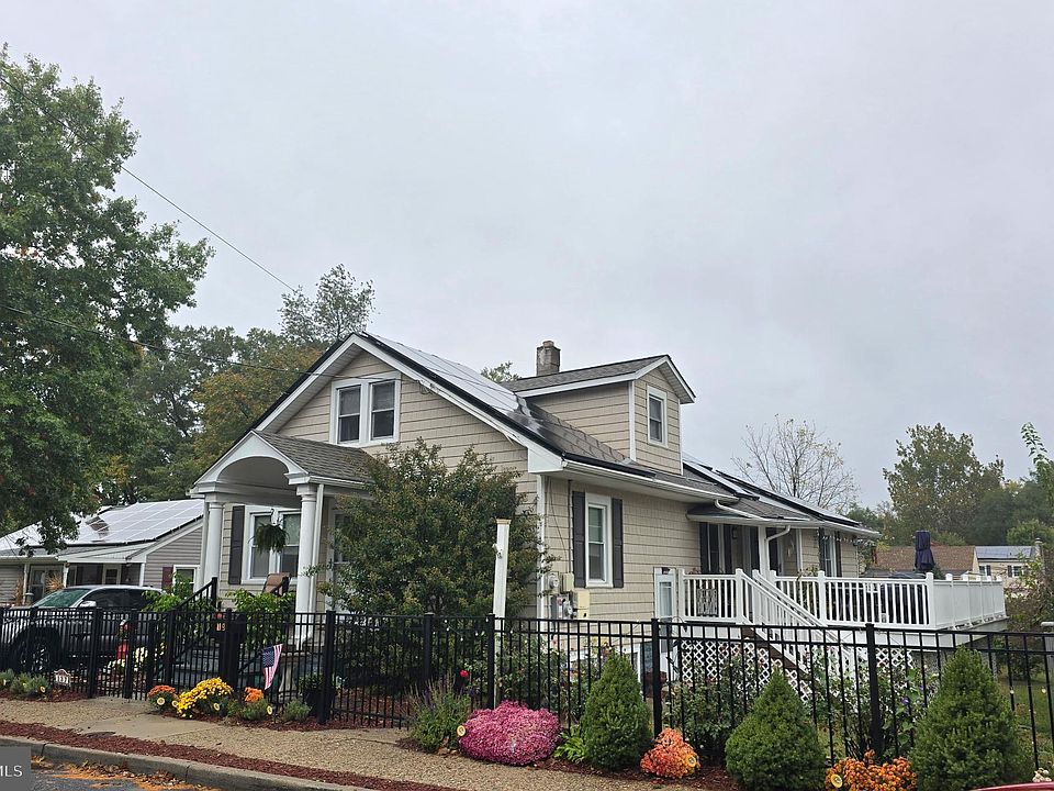 DELIGHTFUL Cape Cod home that exudes character and charm at every turn! Lovingly maintained this home offers a perfect blend of classic details and cozy comfort. Welcoming quaint curb appeal complete with picturesque covered front porch area and traditional cape cod style and dormer windows. Original wood flooring, vintage crown moldings and trim work, wainscoting, French doors...all speak to the home's storied past. SPACOIUS updated kitchen offers ample room for cooking and gathering with endless potential to add your own style. Very lite and brite with cathedral/vaulted ceilings, recessing lighting and sunny skylight. Main floor 1/2 bath is accessed through handy pocket door. There is also a main floor bedroom. Many updated features to include new sheetrock walls/ceilings in the living room, HVAC - 4 years, new windows throughout 5 years, and updated baths. Then step outside to enjoy the new composite decking that wraps around this home overlooking the yard area that offers plenty of space for gardening or play...an outdoor oasis waiting to be enjoyed! Detached garage/building offers additional flexibility---great for storage, a workshop, hobby space, or potential studio conversion. Full basement with full bath. Whether you are a lover of classic architecture or simply searching for a place that feels like home, this Cape Cod Gem is full of heart and history...ready to welcome its next chapter!