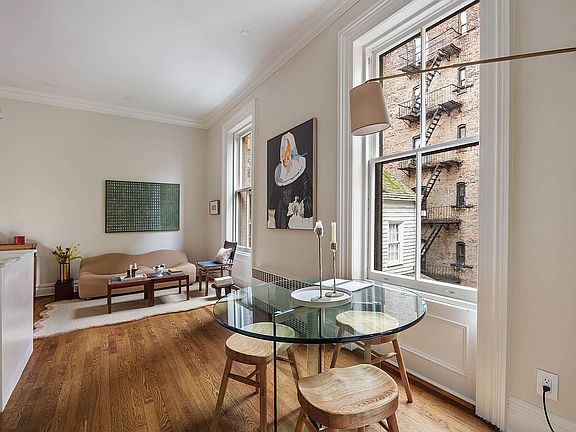 Bathed in light and rich with character, this airy third-floor home captures the essence of prewar Brooklyn Heights living. With 10ft+ ceilings, elegant crown moldings, hardwood floors, and oversized, triple-exposure windows, the apartment balances classic charm with thoughtful updates such as a renovated bathroom and refined architectural finishes throughout.