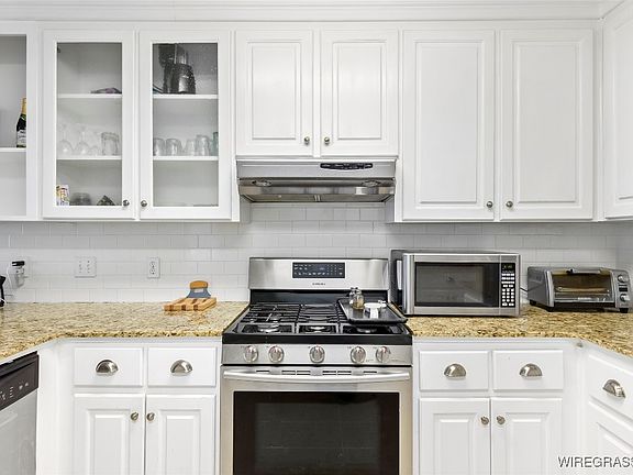 The kitchen offers abundant storage and workspace, along with a breakfast area. Stainless kitchen appliances remain including a newer gas stove, dishwasher and refrigerator. A flexible additional room can serve as a formal dining area, office, or playroom, adding versatility.