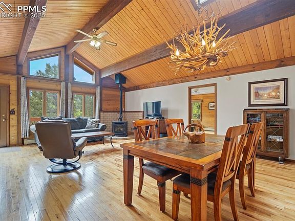 Escape to the mountains in this private retreat located in the highly sought-after Spring Valley community, just outside of Divide, Colorado. Nestled on over an acre of rolling hills at the end of a quiet cul-de-sac, this Ranch style home offers the perfect blend of rustic charm, modern comfort, and plenty of space for your outdoor activities. Inside, you’ll find just over 2,200 square feet of living space with vaulted ceilings, wood-beam accents, and hardwood floors that create a warm, lodge-style feel. The open living area is highlighted by floor-to-ceiling windows and a cozy fireplace, seamlessly connecting to the private deck where you can take in peaceful views of the trees and enjoy the quiet mountain surroundings. The kitchen and dining spaces flow easily for everyday living or entertaining, complete with a built-in wet bar. With 2 bedrooms and 3 baths, the home’s highlight is the spacious primary suite, which includes an enclosed sunroom and private bath. A second fireplace, flexible walk-out level, and 2-car garage provide comfort and convenience year-round. Life in Spring Valley is truly unique. The community features five private fishing lakes and ponds exclusively for residents, with ice skating and ice fishing permitted in winter, making it a true four-season retreat. Surrounded by aspens, evergreens, and granite boulders, this neighborhood is both serene and vibrant. Conveniently located near Woodland Park, Mueller State Park, Pikes Peak, and Manitou Springs, you’ll have easy access to hiking, fishing, skiing, and endless outdoor adventures. Whether you’re looking for a full-time residence, vacation getaway, or income-producing property, this mountain home offers the ideal setting. Discover the unmatched lifestyle of Spring Valley and enjoy a property that balances privacy, recreation, and convenience.