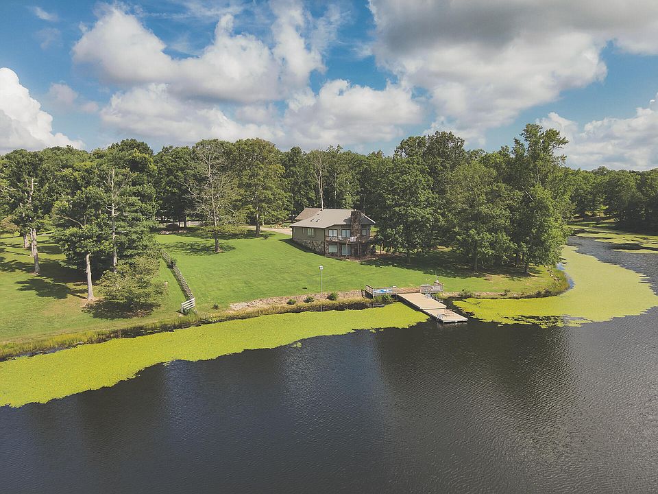 Large master suiteLarge detached officeWrought iron gateStone fireplaceSpacious kitchenVaulted ceilingsDeck overlooking the lake