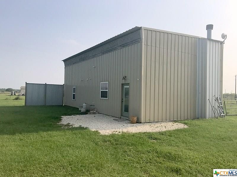 MUST SEE barndominium on approximately 5 acres. The home features 1 full bath with walk-in shower, 1 bedroom with large closet, open concept kitchen, dining and living area. The kitchen has concrete counter tops, farm house sink and large island. Living area has a wood burning fireplace. The large loft area can be used for storage or an extra bedroom. Inside laundry area also adds to the many great features of this unique home.