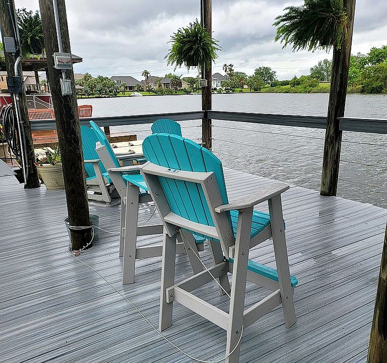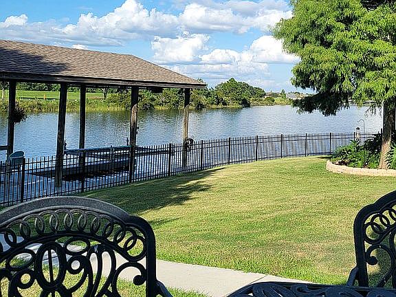 Beautiful, high end custom home in gated community with infinity edge saltwater pool and on navigable water. Home is in pristine condition and has upgrades galore (see features list). Outdoor kitchen and a boat house/dock, along with the pool, make outdoor entertaining a breeze. Indoors, you have a open flood plan with a huge custom kitchen, large great room and triple split bedroom plan for maximum privacy. Whole house generator. Easy access to I10. Just move right in. Call today!