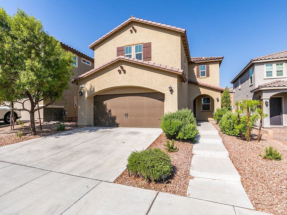Welcome to this stunning 4-bedroom, 2.5-bath residence located in one of Henderson's desirable gated communities. Step inside to find a bright and open floor plan featuring elegant tile flooring throughout the main living areas and warm laminate flooring in the bedrooms. The kitchen is designed for both style and function, complete with sleek granite countertops, ample cabinetry, and plenty of space for cooking and entertaining.