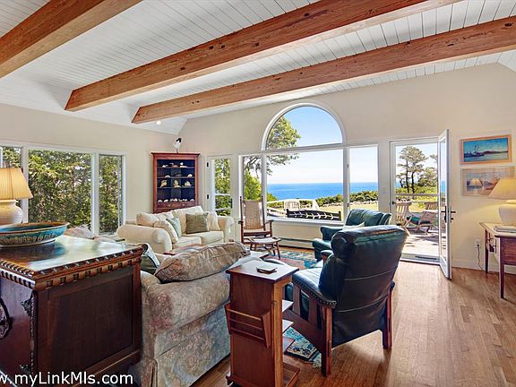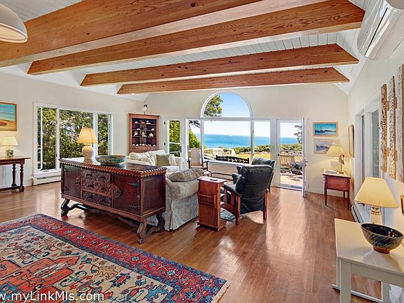 Start your day off viewing magnificent sunrises from the sun-dappled porch, set within the West Chop “loop"...the perfect setting to relax and watch the ferries sailing back and forth to Martha’s Vineyard. Inside, the soaring great room with vaulted ceiling, exposed beams, hardwood floors, expansive windows, and views out to the Nantucket Sound, offers a warm and welcoming gathering space. 5 bedrooms, 3.5 bathrooms, an eat-in kitchen with adjacent dining room, and spacious great-room, allow this much-loved home to accommodate a swell of visiting family and friends. Two 1st floor bedrooms share one full bath, with a half bath off the foyer. The bright and airy primary suite on the 2nd floor has magnificent northeast views over the water, with a cathedral ceiling, sitting area, dressing room, and full bath. Two adjoining rooms connect to this expansive primary suite where you can create a private at-home workspace and/or bonus room. A 4th bedroom and full bathroom complete this floor. Amenities include mini-splits, gas furnace, irrigation, and an outdoor shower, create comfortable for year-round living and well-suited for holiday gatherings. Tucked away from Main Street on 0.87 acres, this quiet, partially wooded, property sits atop a beautiful sloping lawn overlooking the stonewall, flowering meadow, and Sound. Rarely do you find homes with these magnificent views in West Chop, it is an opportunity not to be missed.