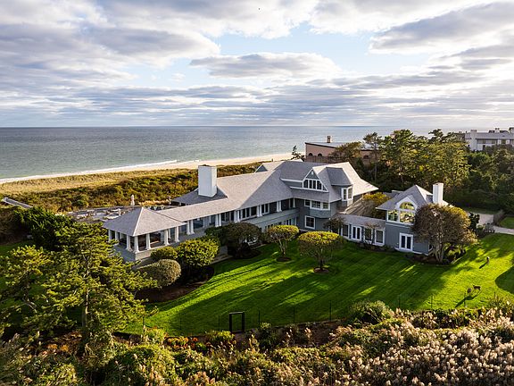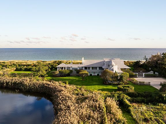 Positioned on one of the most coveted oceanfront lanes in Southampton Village, this exceptional 4 ± acre estate offers 335 ± feet of direct ocean frontage with panoramic views of the Atlantic Ocean and Wickapogue Pond. This large, secluded lot sits at the very end of the lane; offering exceptional privacy and an unrivaled setting, with a gated entry leading into the property itself. Generous, light-filled entertaining spaces showcase sweeping sunrise and sunset views across the ocean and pond. Designed for effortless coastal living, the residence blends timeless architecture with resort-style amenities. Inside, the 9,569 ± sq ft residence flows seamlessly across three levels. The first floor features bright garden views, with four en-suite bedrooms opening to the lawn, two additional bedrooms sharing a full bath, and a private wing with a media room, bedroom, and two baths. A laundry room, powder room, and three-car garage with an adjoining parking court complete this level. The second floor is devoted to both indoor and outdoor gathering and entertaining. Multiple generous spaces capture panoramic water views from every side - including a living room, formal dining room, two sitting rooms, wet bar, chef's kitchen, gym, and powder room. A series of terraces extend from this level, creating a seamless connection to the outdoors and providing the perfect setting for open-air dining and relaxation overlooking the ocean and pond. The third floor serves as an exclusive primary retreat, featuring a private oceanside balcony, office, walk-in closet, laundry, and a spa-like bath with dual water closets and a shower that opens directly to the balcony, framing unobstructed ocean views. A private boardwalk leads directly to the beach, complemented by a dune-top platform for lounging or dining overlooking the shoreline. The in-ground gunite heated pool stretches toward the dunes, framed by views of both ocean and pond. A separate outdoor kitchen, covered dining terrace, basketball sport court, and expansive lawn surrounded by mature landscaping complete this private oasis. This rare offering combines privacy, panoramic vistas, and refined design. A sanctuary where land, sea, and sky meet in perfect balance.