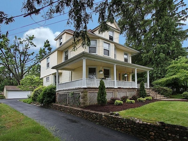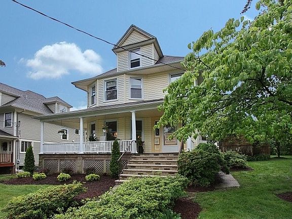 Constructed in 1910, this immaculately maintained home features a lovely front porch that opens into the gracious entrance hall.Stained glass windows, hardwood floors, and wide woodwork add to the charm of this warm, light-filled home. The trumpet vine-covered pergola overlooks a private lower deck with hot tub. With updated kitchen and baths and private third floor guest room, this home provides the perfect setting for your vintage treasures and indoor/outdoor entertaining. Quiet neighborhood near NYC transportation.