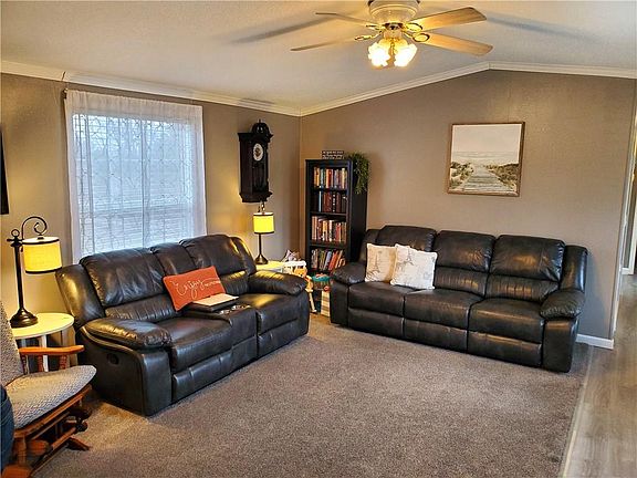 This charming single-wide provides a comfortable and cozy living space with three bedrooms and two full bathrooms.