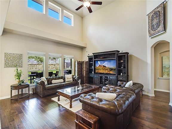 Modern elegance in Belterra is nestled on a spacious lot. Captivating front yard with stunning masonry + gorgeous landscaping + three-car garage. Five bedrooms and four full baths give you 3,661 square feet of luxury living space. When you walk into this magnificent home, you immediately see the ornate front door. You have a dedicated office and a formal dining room. Gorgeous wood floors and stunning archways give this home a touch of elegance and sophistication. Your living room feels bright and airy, w/ soaring ceilings and many windows. It opens seamlessly to the kitchen and breakfast area. The spacious chef's kitchen is a designer's dream, featuring sparkling granite counters, brick-designed backsplash, a gas cook-top, pantry, breakfast area, built-in microwave & oven plus a stainless steel refrigerator. The kitchen island and breakfast bar offer an abundance of counter space. A true Master Retreat awaits w/ an enchanting Spa-like en-suite complete w/ extended double vanities, large walk-in shower, luxurious soaking tub, and walk-in closet. Nice laundry room with the washer and dryer included. Upstairs you have a loft or game room with a full bath. That can be used as a flex space - virtual school area, media area - your choice! Four additional spacious bedrooms and two additional full baths. Relax under your covered patio and gaze upon your backyard and limestone back fence. This lovely home is situated in the highly coveted area of Dripping Springs ISD. Great location! Close proximity to shopping, grocery stores, food, and more. Pets are negotiable with breed restrictions. Don't miss out on this wonderful home!