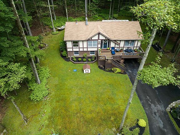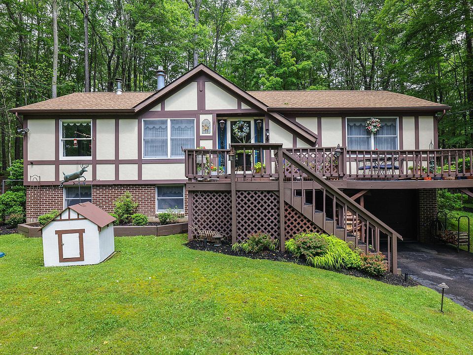 Immaculate 3-bedroom, 2-bath home in a private, gated community with fantastic amenities! This beautifully maintained property features a cozy living room with a fireplace, a spacious primary bedroom with a private bath, and a formal dining area. The kitchen boasts plenty of cabinet space, while the huge four-season porch is filled with natural light. The completely remodeled lower level offers new flooring, a large family room with a woodstove, and an oversized 1-car garage. Relax on the deck overlooking the expansive wooded lot. Enjoy community lakes, pools, tennis courts, and a clubhouse!
