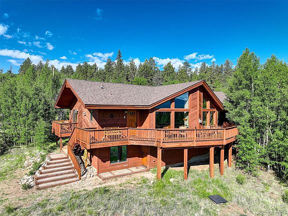 This spectacular year round retreat is perfectly nestled in a crescent overlooking the entirety of the Lost Creek Wilderness and Tarryall Mountain Range. It stands at 9500 feet on 2 beautiful acres and proudly hosts a thriving blue spruce seedling from the Millennium Holiday Tree, Colorado's Gift to the Nation. As you enter, the foyer flows into the great room filled with large picture windows, breathtaking views, and a beamed vaulted ceiling that centers the majestic stone fireplace. The kitchen, with island, oak cabinets, granite counters, and spacious dining area completes this open space. The great room walks out to a large covered deck with gas grill, dining area, wooden swing and a sundeck with views like no other. Together they span the entire front of this exquisite home. There are 3 bedrooms and 2 baths. The large primary bedroom, with vaulted beamed ceiling, offers a seating area and glass doors to the tree lined covered deck. A 2nd bedroom features an en suite bath, vaulted beamed ceiling and private deck that sits among the aspen. A 3rd nonconforming bedroom has a beamed ceiling and forest view. The lower level, with separate entrance, features a family room with a valley view, wet bar, 3/4 bath and workshop. Wooded forests and aspen groves surround this home with trails for quiet walks, winter sledding and wide open views of the star studded sky. The Stagestop HOA is a recognized FireWise USA Community. It also includes exclusive membership in the Tarryall Fishing Club with access to 3 ponds and 16 miles of private freestone trout fishing on the Tarryall River, 5 minutes away. Located in the heart of Colorado, this property is 1.5 hours from Denver and Colorado Springs, 25 minutes from Fairplay and 1 hour from Breckenridge and Buena Vista, which boast world class skiing, rafting, fishing, hiking, climbing, high country shopping and entertainment. This is a must see, must experience property where an unpolluted sky meets the universe in soulful silence.