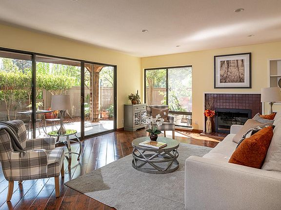 Buyer must be Approved Stanford Faculty. Step into a world of tranquility in this charming 2 bed, 2 bath condo. Rarely available first floor unit with spacious open living room with cozy fireplace and dining area, perfect for entertaining or cozy family dinners. Large and inviting primary bedroom with ensuite bath Secondary bedroom with full bath. Well-designed kitchen creates a perfect blend of functionality and style. Convenient separate in-unit laundry. Private wraparound patio, perfect for al fresco dining on warm summer nights, and ample space for flowers and vegetables, creating a beautiful outdoor space. Detached 1-car garage Located in a desirable neighborhood, with close proximity to schools, campus, California Avenue for shopping and dining, and biking or hiking the Dish. Peter Coutts complex is in one of the best school districts and is amenity-rich with heated pool, spa, club house, and updated playground. Dont miss opportunity to own this peaceful convenient condo.,