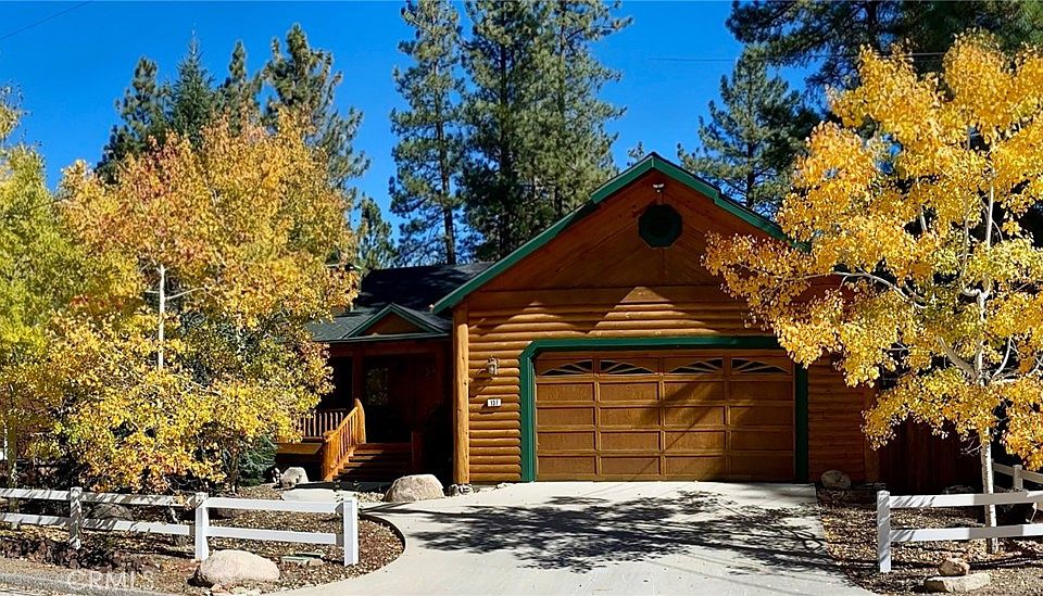 Welcome home to your mountain retreat in the quiet Fox Farm area of Big Bear Lake on a cul de sac - just a few minutes to Snow Summit or Bear Mountain (just two miles to each parking lot) and the Village. This home is perfect for entertaining in the open floorpan kitchen, dining, and living space with a cozy fireplace with log accents throughout. 3 large bedrooms and 2 full bathrooms on a single level with an oversized two car garage. The tongue and groove vaulted ceiling in the living room, kitchen, and dining area with log accents give you the real mountain feel. Each of the three oversized bedrooms have plenty of room for large beds or multiple bed options. The primary bath has a shower and separate soaking jetted tub. There are two decks in the back - one off the kitchen and one off the master. The inviting front porch is perfect for morning coffee or drinks watching the wildlife in the cool summer evenings or watching the snow fall in the winter. The oversized 2 car garage has room for two cars and your toys. Come spend beautiful summers and cozy winters in this quiet Fox Farm home. This home is perfect for full-time living, a vacation home, or as a short-term rental.