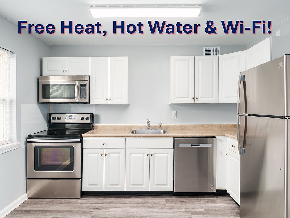 These spacious 2-bedroom, 1.5-bathroom floor plans offer a thoughtfully designed space, complete with FREE HEAT, FREE HOT WATER & FREE Wi-Fi (over $300+ savings per month to our residents) - making it easy to live comfortably and affordably. Enjoy Central Air Conditioning (A/C) in the warm days of summer or efficient Gas-Forced Hot Air Heating in the cold days of winter. The laundry facility is conveniently located on the first level of the same building. Whether you're relaxing in the inviting living room or preparing meals in the well-equipped kitchen, this layout is perfect for today's dynamic lifestyle.