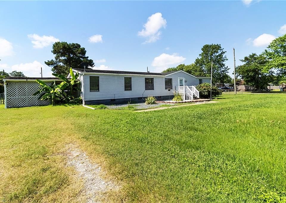 Open concept floor plan with tons of potential! Bring your vision and creativity- this home offers a great sweat equity opportunity. Interior features a spacious layout plus a finished sunroom/porch for extra living space (no known permit on file for this area). Outside, enjoy nearly an acre of land with endless possibilities for outdoor living, gardening, or future projects. There's also a detached garage space perfect for storage, a workshop, or future customization. Please note: There is no septic permit on file with the county. Buyers are to conduct their own due diligence regarding septic and finished spaces. Conveniently located in Moyock with easy access to the VA/NC line, shopping and schools. A rare change to build equity and make this home your own.