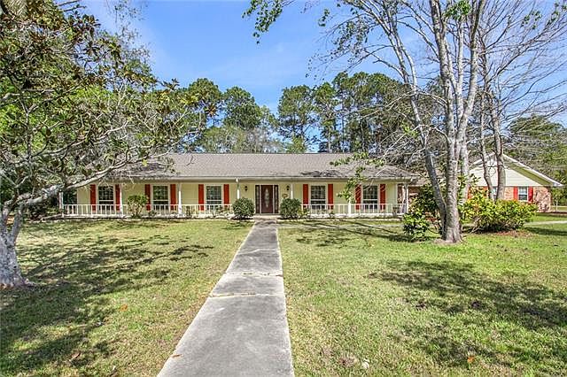 Beautiful & Move-In Ready in French Branch Subdivision! This freshly painted 4-bedroom, 2.5-bath home sits on a landscaped 1-acre corner lot in Flood Zone C. The spacious living area boasts vaulted ceilings with exposed beams, built-in bookcases, exposed brick, and an electric fireplace a perfect blend of charm and comfort. The large primary suite features a hydro tub, walk-in shower, double sinks, and his & her closets. The kitchen is equipped with all appliances (including washer & dryer), a breakfast area, and a formal dining room. Additional highlights include: 20' x 17' game room Fabulous sunroom with tons of natural light. Functional floor plan with room to entertain and relax This home has all the space and style you've been looking for truly move-in ready! And Flood Zone C